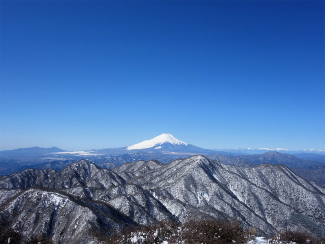 山頂からは西丹沢越しに富士山や南アルプスの稜線、足元にはユーシンから続く熊木沢の渓谷と奥に箱根の山々、丹沢山や塔ノ岳などの丹沢主脈、蛭ヶ岳山荘の前からは首都圏の街並みや奥多摩・奥秩父山塊が見渡せます。
