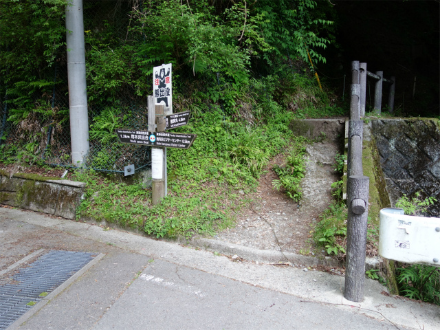 ツツジ新道の登山口は県道を奥へ500mほど進んだ所にあります。