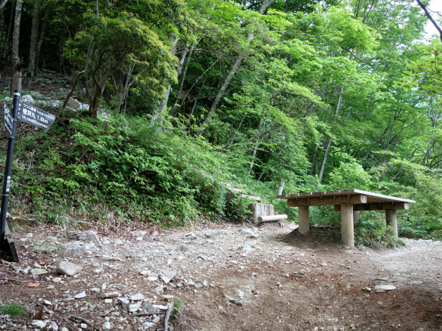 山頂まで800m地点のベンチを過ぎて最後の階段を登り詰めると、展望園地から1時間20分ほどで石棚山稜からのコースと合流します。