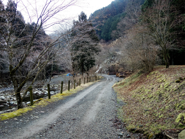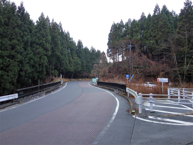 さらに植林帯の中を下ると二ノ塔から55分ほどで菩提峠の駐車場です。