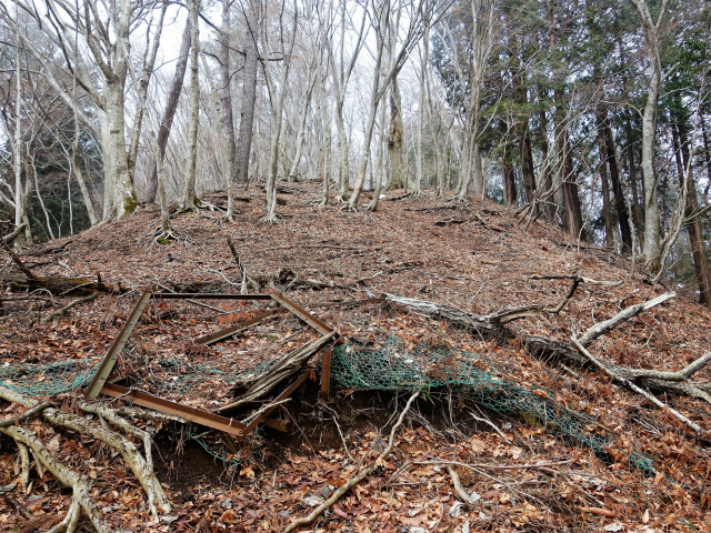 踏み跡を辿ると倒壊した鹿柵を通過します。