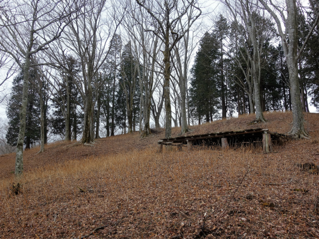 ピークに近づき再び鹿柵のゲートをくぐるとベンチのあるなだらかな広場があり、キャンプ場入口から1時間20分ほど、そのすぐ先がヨモギ平です。