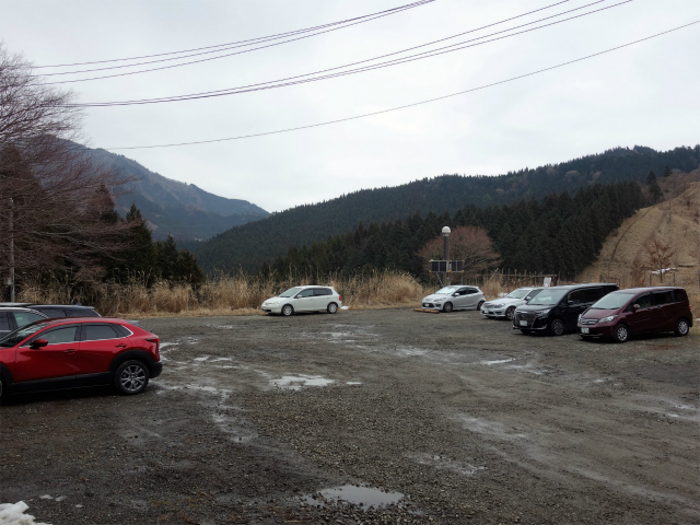 東名高速の秦野中井インターチェンジを下りて国道246号線方面へ向かい、落合の交差点で県道70号線のヤビツ峠方面へ右折、峠を越えた先のチップトイレがある富士見橋(門戸口)で左折して急坂の菩提峠林道を登りつめると菩提峠の駐車場、富士見橋の100mほど先に水汲み場が併設された護摩屋敷橋の駐車場があります。