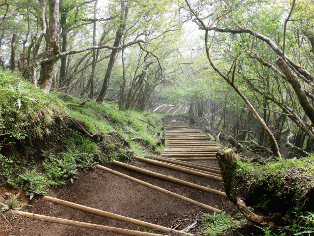 下社方面の登山道は下り基調のトラバース路で転落防止柵が設置されています。