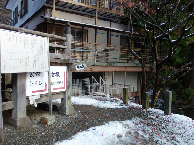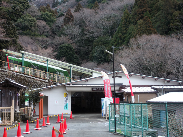 大山公衆トイレ脇を過ぎると茶屋処があり、左奥にケーブルカーの阿夫利神社駅があります。