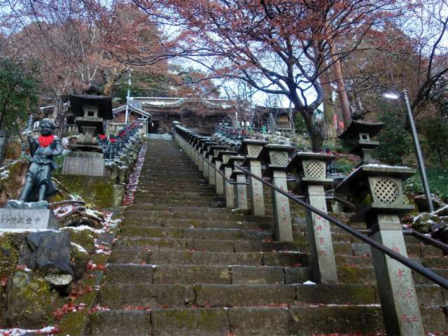 ケーブル口から15分ほど、駅のすぐ先に男坂と女坂の分岐があります。