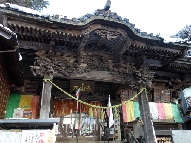 龍神堂の脇を通り童子像の並ぶ急階段を登ると大山寺です。