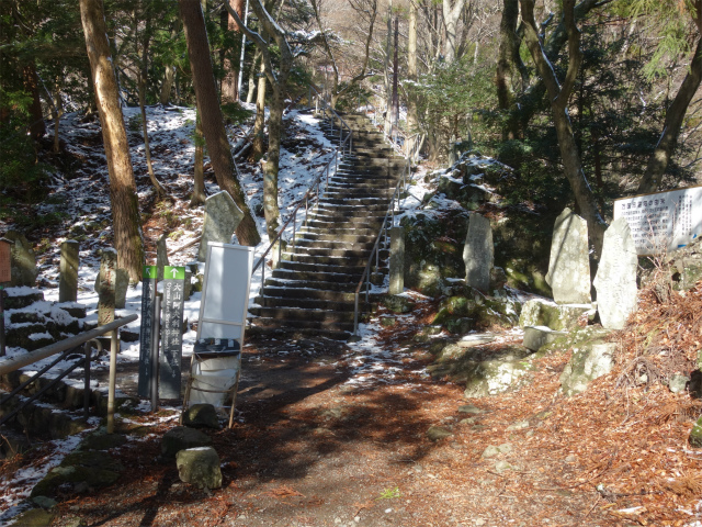 表参道コースには登拝門前の一丁目から山頂の二十八丁目まで石柱があり目安になります。