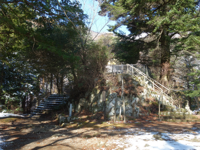 さらに階段を登ると二十八丁目の鳥居をくぐり、二十五丁目の分岐から15分ほどで阿夫利神社本社のある大山山頂です。