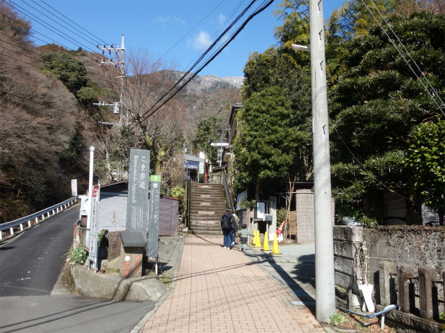 市営駐車場のあるケーブル口から商店や宿坊の並ぶこま参道を進みます。