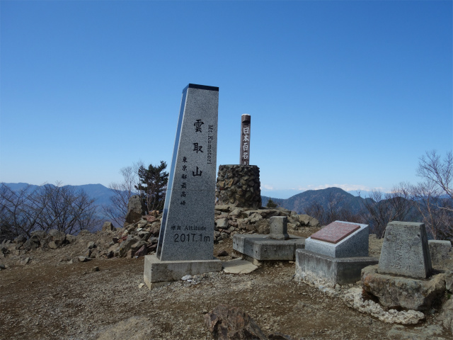 田部重治のレリーフ前を通りひと登りすると山荘から30分ほどで雲取山の山頂です。