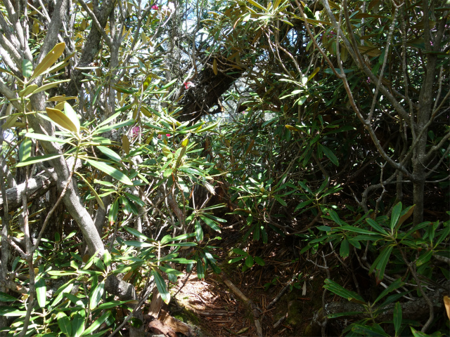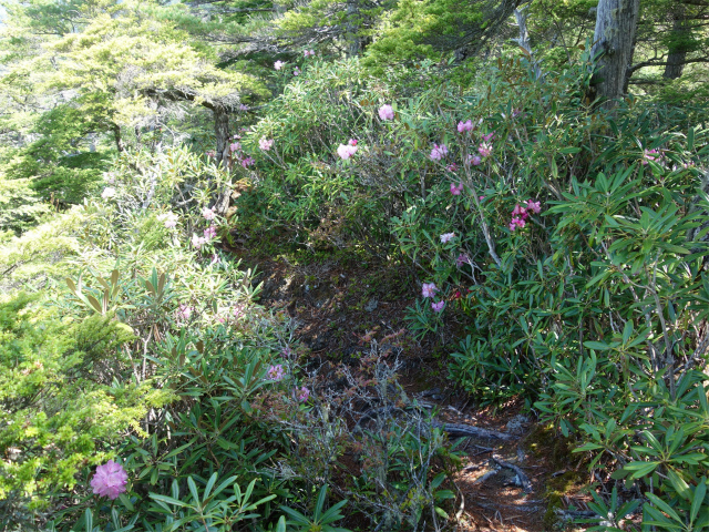 踏み跡は比較的はっきりしていますが、シャクナゲが煩くなります。