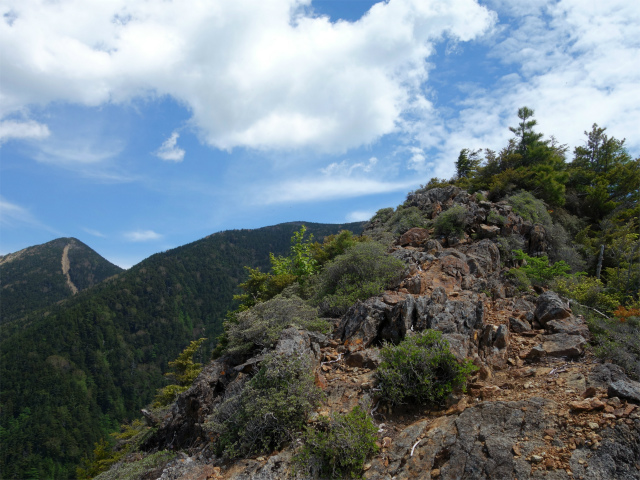 なだらかな稜線上の岩稜を一部巻きながらアップダウンが続きます。