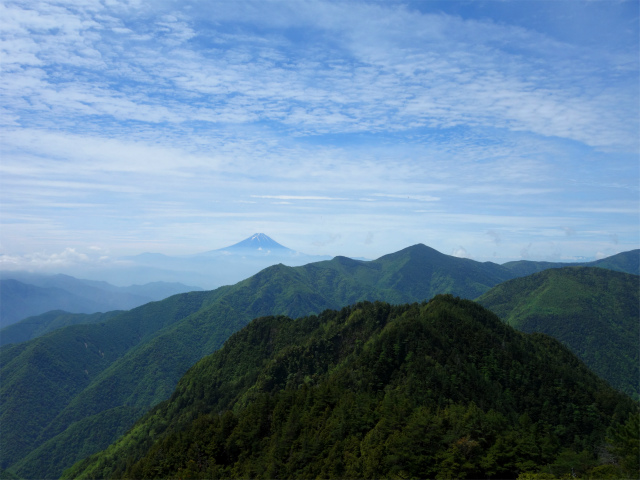 鶏冠山・木賊山(鶏冠尾根) 登山口コースガイド 2177mピークからの鶏冠山と富士山【登山口ナビ】