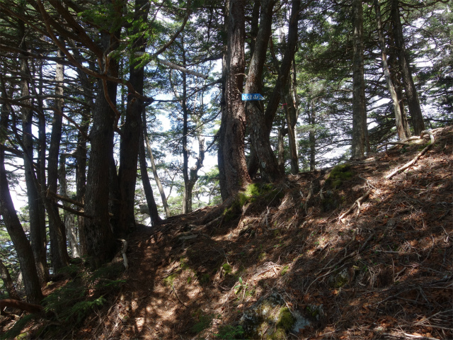 プレートのある尾根筋で右に折れてさらに登り上げていきます。