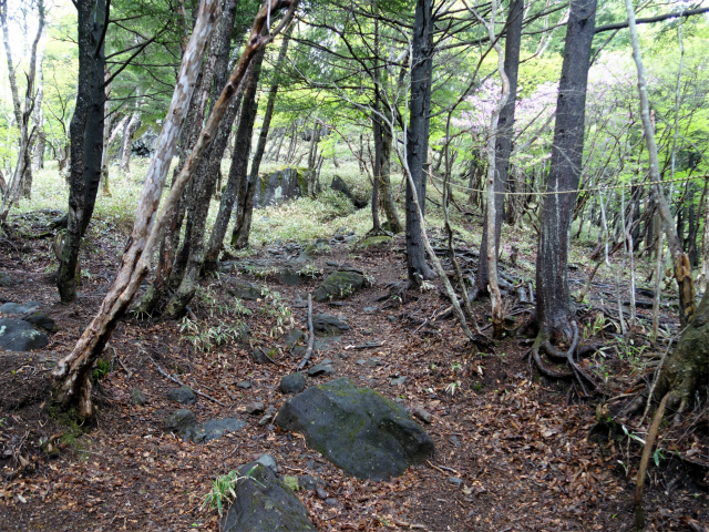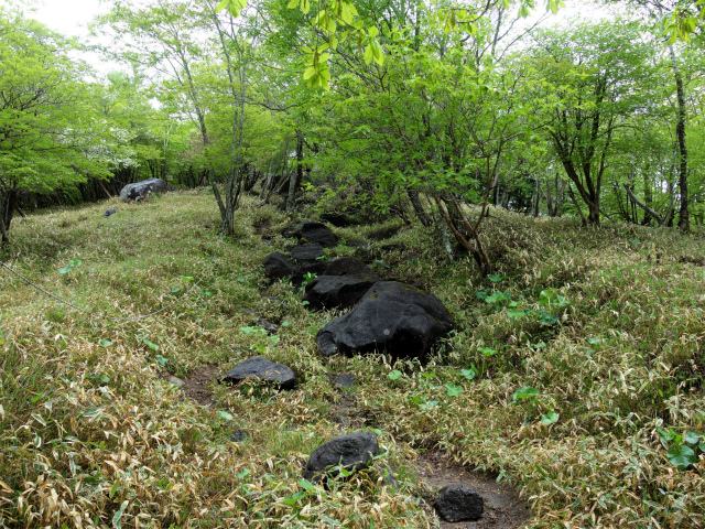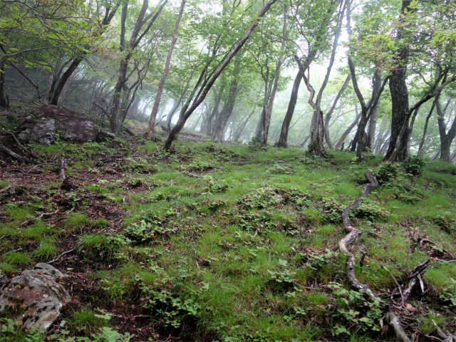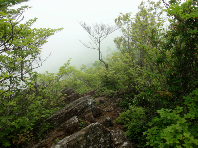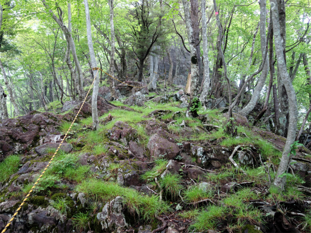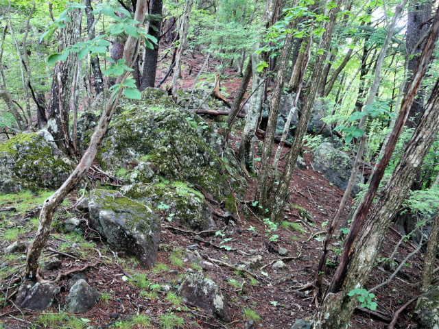 取り付きはなだらかな斜面ですが、すぐに露岩の点在する尾根筋となります。