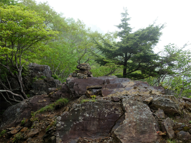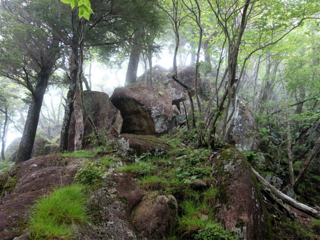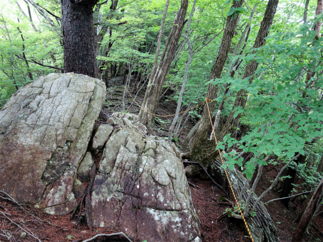 急登区間が続き大きな岩の左側を巻くように進みます。