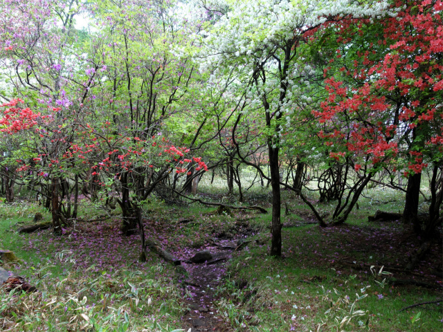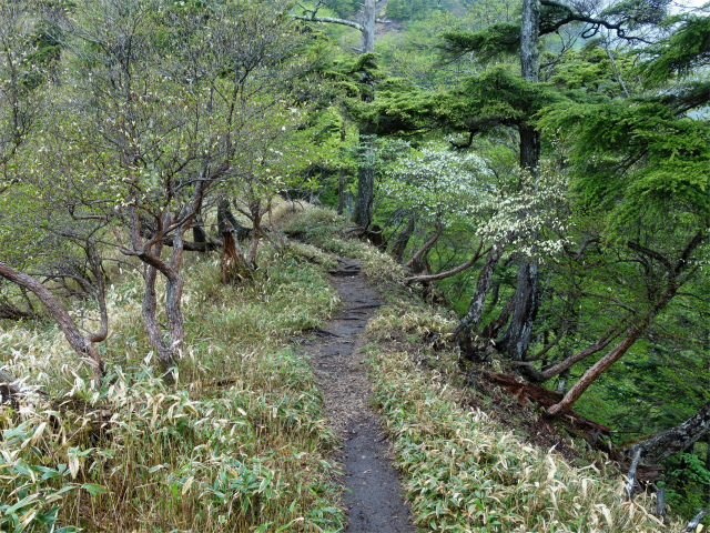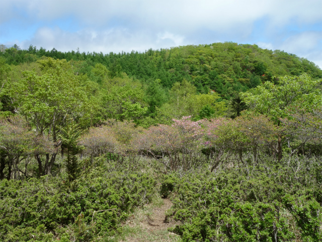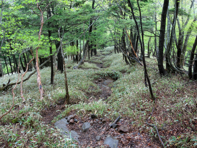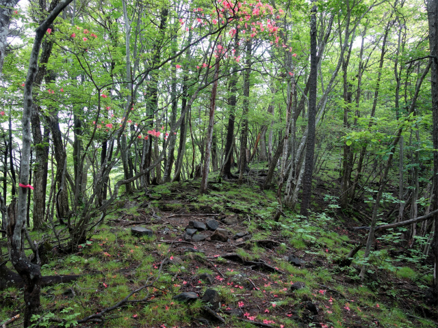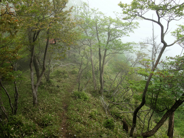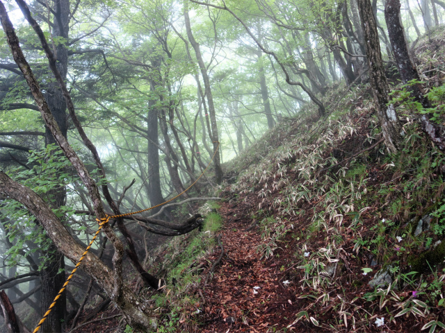 ピークから鞍部のツツジ平へわずかに下り、左に折れると程なく弓の手コースと合流します。