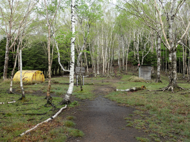 西向きに折れて10分ほど下った鞍部にはシェルタータイプの避難小屋があります。