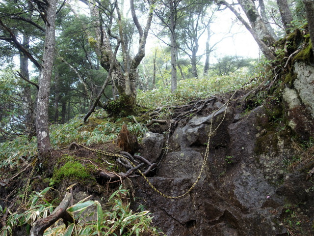 痩せた鞍部を過ぎると袈裟丸山の山頂に向けて急坂が続きます。