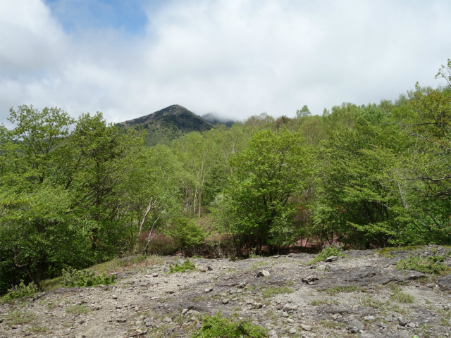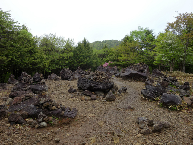 石の転がるなだらかな斜面を登り返していくと賽の河原から1時間ほどで小丸山です。