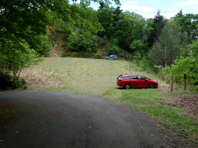 北関東道の伊勢崎インターチェンジから国道122号線方面へ向かい、草木湖の上流部でけさ丸山登山口・寝釈迦の案内板で左折して小中西山林道を6.6kmほど進むとバラ沢峠の駐車スペースと登山口があります。