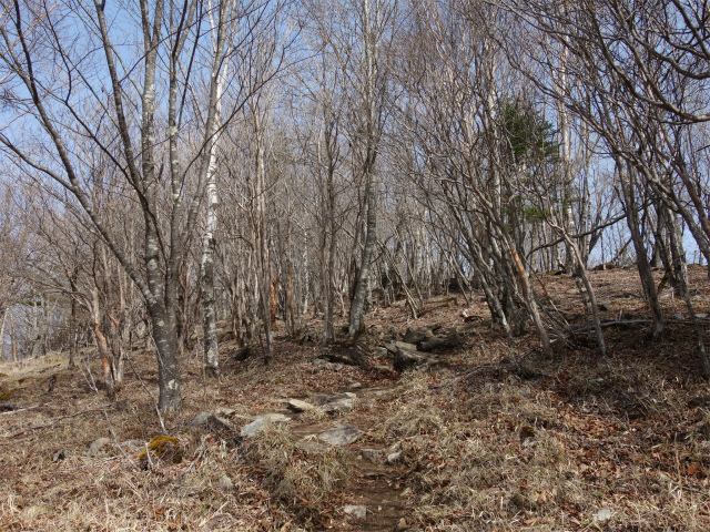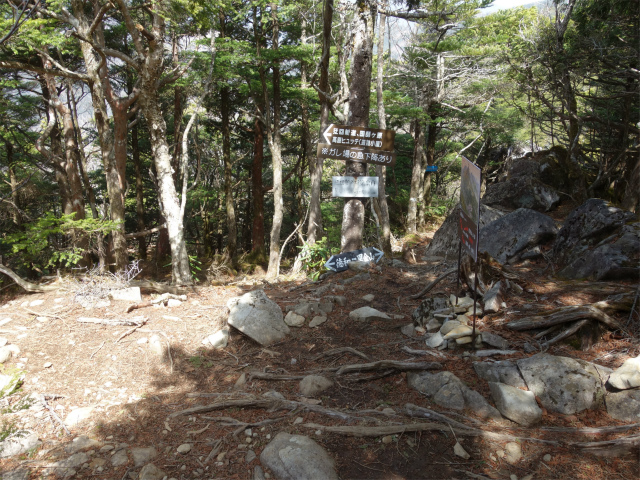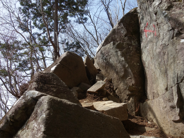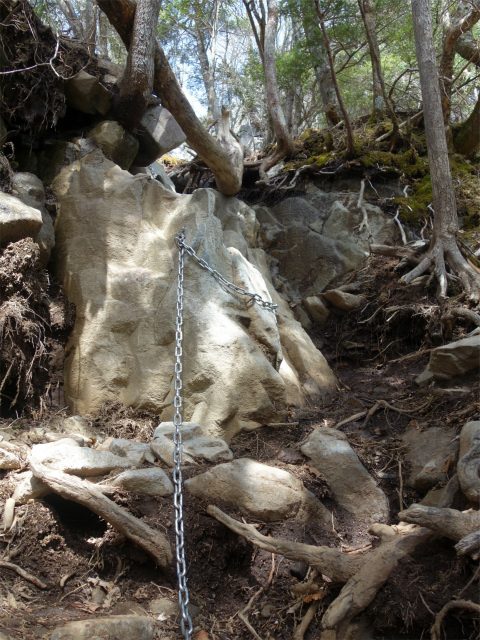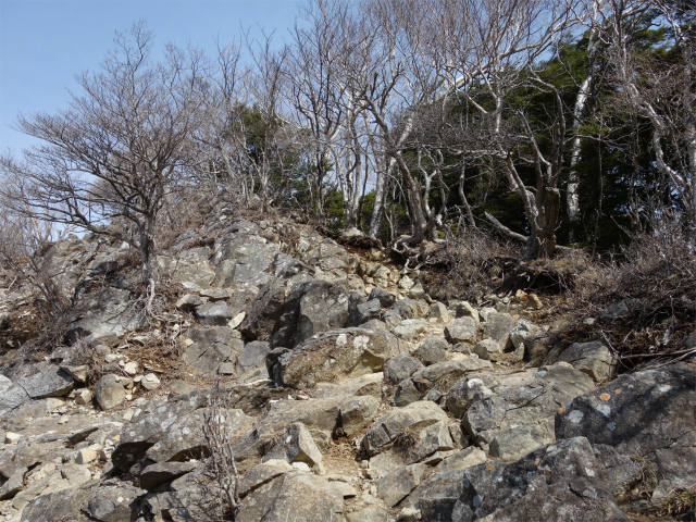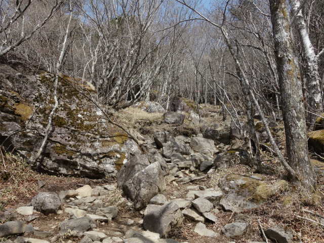 程なく国師ヶ原方面との分岐となり、登山道は露岩の急斜面を登ります。