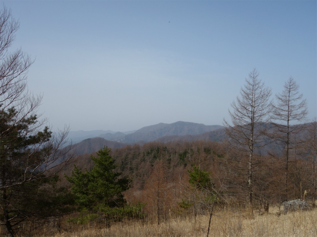 山頂はあまり広くありませんが、天気が良ければ登山口の大平高原と大菩薩嶺、御坂山地と富士山、烏ノ尾根越しに南アルプス、奥秩父の金峰山や国師ヶ岳、黒金山の背後に甲武信ヶ岳などの展望が広がります。