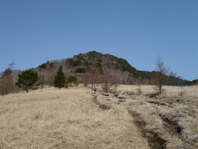 平坦な尾根を進むと露岩を通過し、間もなく展望が大きく開ける国師ヶ原の上部に出ます。