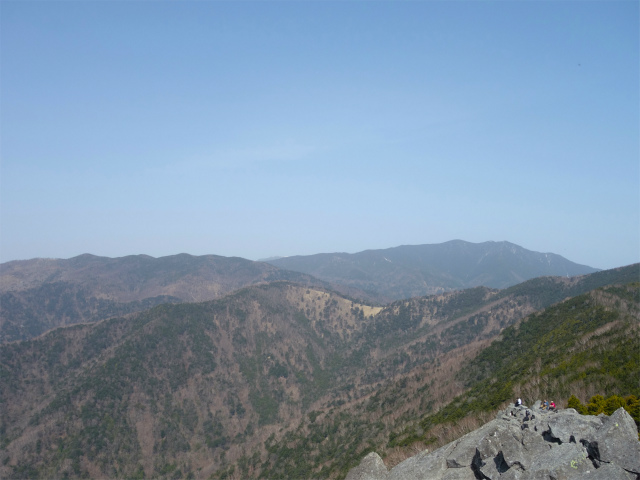 岩の上部からは乾徳山の稜線や富士山などを望むことができます。