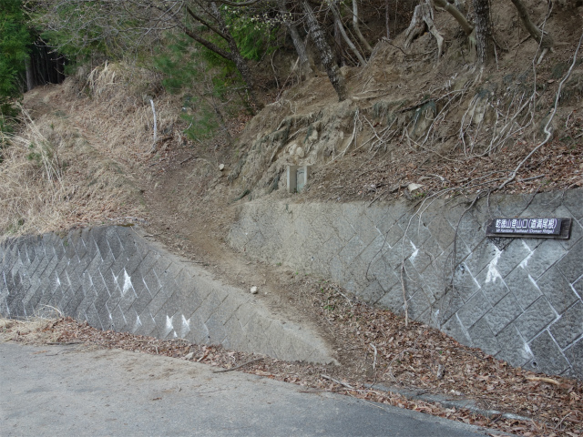 墓地脇から山間に入り害獣防止ゲートを通過すると、徳和峠のすぐ手前左手に登山口があります。