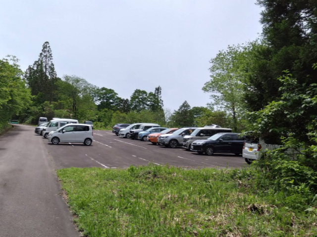北アルプス栂海新道の北端にある白鳥山の坂田峠登山口にある駐車スペース(標高600m)。アクセスは北陸道の親不知インターチェンジを下りて国道8号線の魚津・朝日方面へ右折、道の駅 越後市振の関を過ぎて境川を渡った先で県道115号線へ左折、道なりに上路地区を過ぎて橋立上路林道へと進み、白鳥山登山道入口の案内板で山姥林道へ右折する。途中の分岐を右へ進むと坂田峠登山口へ通じている金時林道(車両進入禁止)との分岐に10台分、100mほど先に24台分の駐車場がある。林道は登山口まで全線舗装されている。