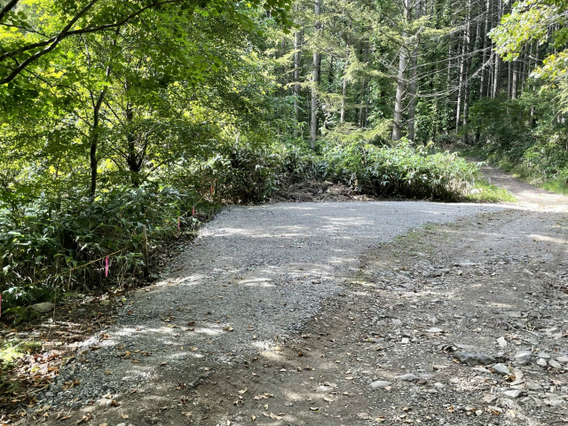 ※駐車スペースから500mほど手前の鎧沢橋が崩落の危険性があり橋より先は当面の間は車両通行止、手前の路肩スペースを利用(計五ヶ所)