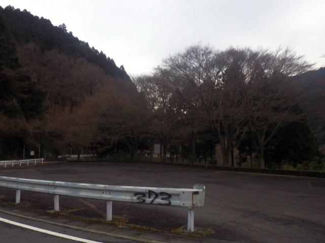 丹沢湖北端の中川橋付近にある無料駐車場(標高345m)。アクセスは東名高速の大井松田インターチェンジを下りて国道255号線の山北・秦野方面へ向かい、籠場インターの交差点を国道246号線の沼津・御殿場方面へ左折、道なりに11.4kmほど進み谷峨駅入口を過ぎた先の清水橋の交差点を神奈川県道76号山北藤野線の中川・丹沢湖方面へ右折する。丹沢湖に架かる永歳橋を渡り、城山の交差点から1.3kmほど進むと右手に中川橋があり渡ったつき当たりに駐車場があるが、橋へは右折禁止のため先でUターンする必要がある。県道を800mほど奥へ進むと細川バス停を過ぎた先にある脇道の階段(指導標あり)を進むと二本杉峠方面の登山口がある。