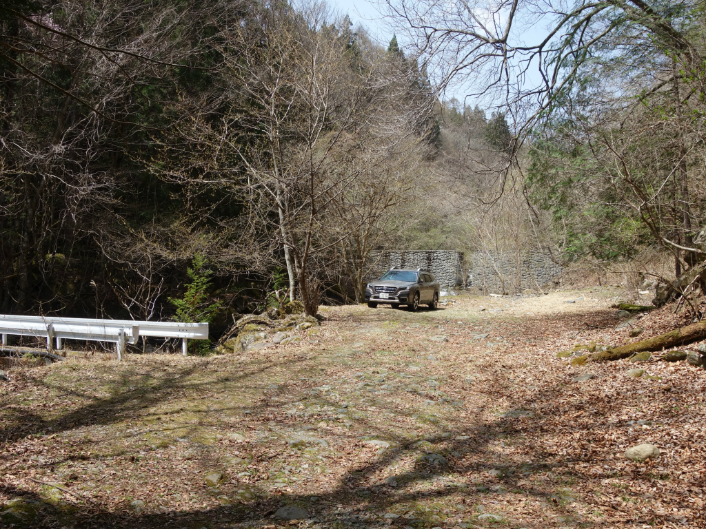 ※現在駐車不可、すぐ先の分岐を左折して未舗装路を300mほど進むと空き地がある