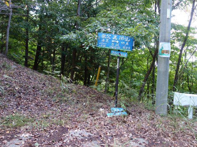 山梨市の帯那山東部にある東山中部林道の切差峠(古峠・鍵懸峠)の路肩スペース(標高1030m)。アクセスは中央道の勝沼インターチェンジを下りて国道20号線の東京・大月方面へ向かい、すぐに側道の県道306号線の勝沼市街方面へ左折、相興の交差点で県道303号線の山梨方面へ右折、道なりに国道140号線方面へ進む。国道との交差点を直進して西関東道路(国道140号線バイパス)を秩父方面へ右折、八幡南ランプより積翠寺・太良峠方面へ左折して道なりに8.5kmほど進むと右手に林道が分岐する。林道は峠まで全線舗装されており、牧丘方面にも通り抜けが可能だが落石も多い。金光山や八幡山方面の登山口となる。