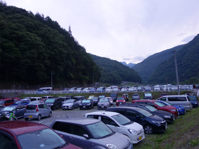 南アルプス林道の北沢峠へ向かう長野側の路線バス発着拠点となる戸台のバス利用者用の駐車場(標高870m)。アクセスは中央道の伊那インターチェンジを下りて県道87号線の伊那市街・高遠方面へ左折し、国道153号線につき当たったら飯田・駒ヶ根方面へ右折、1.2kmほど先の入舟の交差点で国道361号線の高遠方面へ左折してしばらく道なりに進む。国道152号線(秋葉街道)につき当たったら大鹿・長谷方面へ右折し、美和湖を過ぎた先で南アルプス林道・戸台の道標に従い左折、仙流荘とバス停の先に3箇所に分かれて未舗装の大駐車場が整備されている。駐車場は2022年7月14日より有料となり料金は5日以内1000円、以降は5日ごとに1000円。バス停前に登山相談所とトイレがある。仙流荘(仙人の湯)は日帰り入浴も可能で営業は南アルプス林道バス運行期間中の12時00分~19時30分(土日祝日は11時00分~)、一部を除く火曜休館で料金は大人800円。