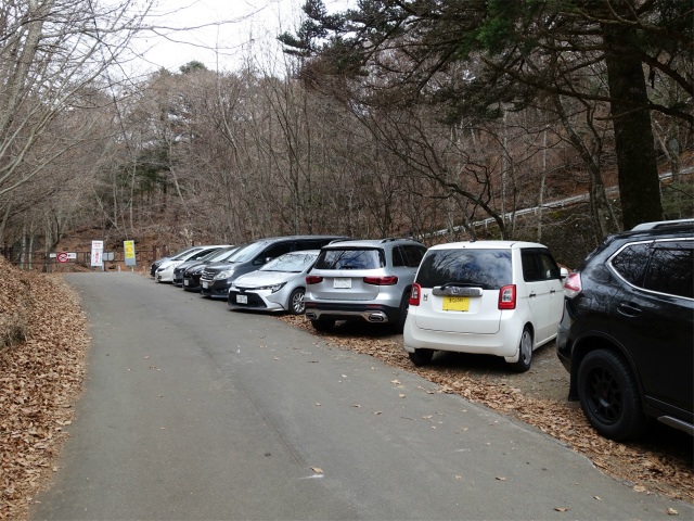 三ツ峠の清八林道登山口へアクセスする西川新倉林道と県道の分岐点にある路肩スペース(標高1225m)。アクセスは中央道の河口湖インターチェンジから国道138・139号線の山中湖・富士吉田方面へ進み、昭和大学入口の交差点を国道137号線方面へ左折、平成通りから甲府・富士河口湖方面へ左折して新倉河口湖トンネルを経て国道の新御坂トンネル手前を県道708号線の御坂峠方面へ右折すると三つ峠登山口バス停付近にある。西川新倉林道が冬期閉鎖され清八林道口の駐車場が利用できない際の代替となる(県道からすぐのゲート付近にも数台の路肩スペースあり)。