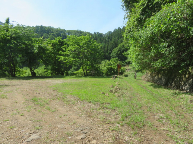 西上州の神津牧場東側にある御場山東麓を通る林道沿いの駐車スペース(標高750m)。アクセスは上信越道の碓氷軽井沢インターチェンジを下りてすぐの交差点を下仁田方面へ左折、県道43号線につき当たったらさらに左折し、3.6kmほど坂を下った異常気象時の通行止ゲートがある交差点で右折、高立の標識が立つ橋を渡った少し先で御場山林道が分岐するので左折する。登山道入口となる南室作業道分岐の手前に路肩の広いスペースがあるが、林道は未舗装の悪路のため地上高が低い車は分岐400mほど手前の小平集会所の南側の道路沿いにある駐車場所(3台)を利用する方が無難。