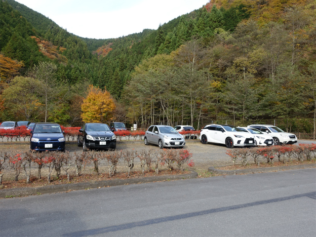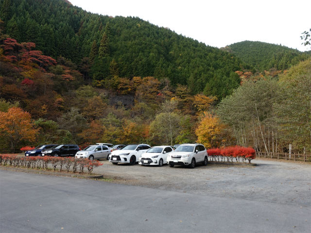 檜原都民の森から1kmほど先にある奥多摩周遊道路の上下線に設置された無料駐車場(標高1060m)。アクセスは圏央道のあきる野インターチェンジを下りて国道411号線(滝山街道)の立川・五日市方面へ右折、油平の交差点を都道7号線(睦橋通り)の五日市方面へ左折、JR武蔵五日市駅で檜原街道の上野原・檜原方面へ左折する。檜原村役場の先の橘橋の交差点を左折し、上川乗の交差点を直進して道なりに進むと数馬の湯を過ぎて周遊道路に接続する。駐車場から直接の登山ルートは通じていないが、都民の森が満車時の際の臨時駐車場となっている(トイレは2021年3月に撤去)。奥多摩周遊道路の通行可能時間帯(4月1日から9月30日まで8時00分~19時00分、10月1日から3月31日まで9時00分~18時00分)のみ利用することができる。